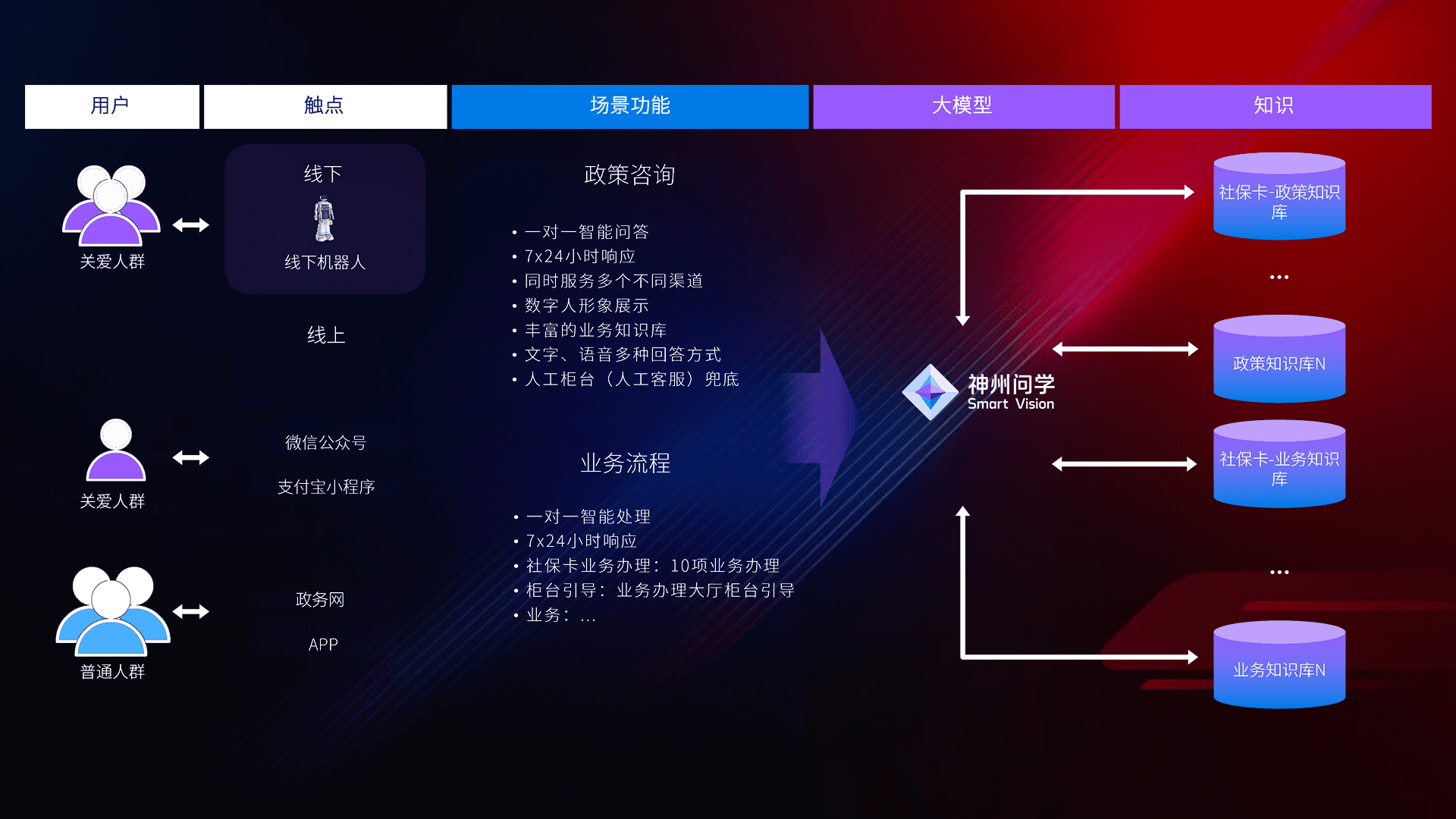 • 线上线下全覆盖:线上提供微信公众号、、、、支付宝小程序、、、、政务网、、app多种渠道,,与线下机器人形成完整服务体系。。。。